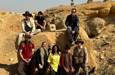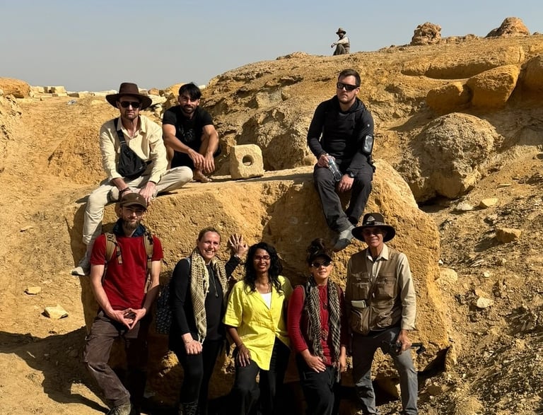 In the photo above I'm with adventurers who joined me at the lost pyramid of Ameny Qemau. The large block behind us and the small block with the hole through it both contained interesting secrts. Hidden there by creators from long ago. Join me in an upcoming adventure!