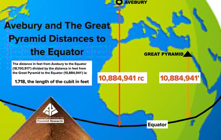 The distance from Averbury Circle, perhaps the largest stone circle in the world, to the Equator, in royal cubits, is the same number distance in feet from the Great Pyramid to the Equator. This unexpected result seems to indicate that the ancient sages involved in the laying out of these megaliths, laid them out in a grand scale that shows they knew the English foot. The ratio of the Avebury distance to the Great Pyramid distance is 1.718, which is the length of the Royal Cubit in feet!